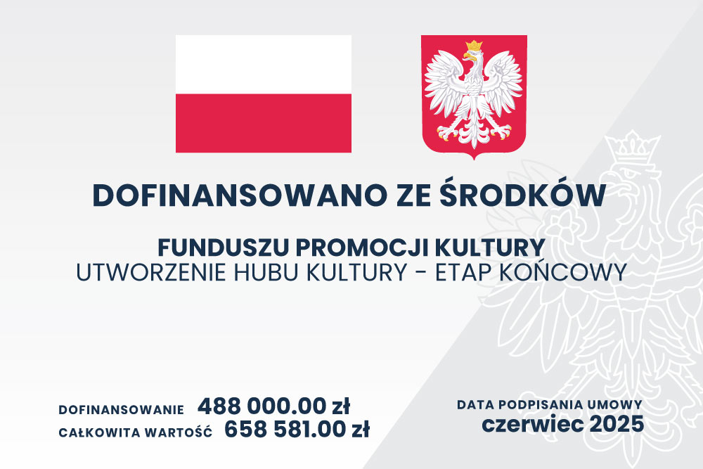 Dofinansowano ze środków Ministra Kultury i Dziedzictwa Narodowego pochodzących z Funduszu Promocji Kultury – państwowego funduszu celowego